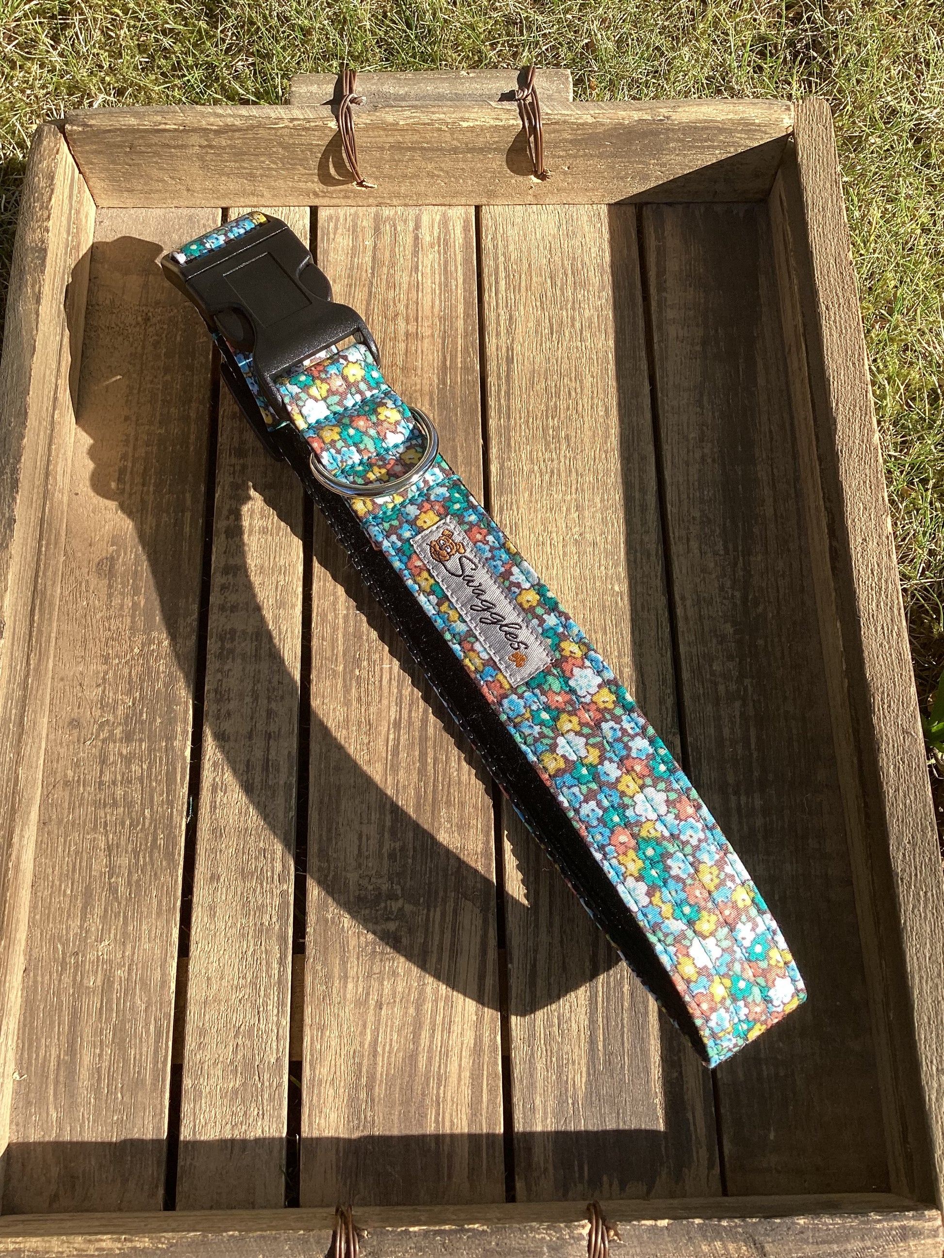 Matching lead, bandana and bow tie available Choice of black plastic buckle or metal buckle that can be engraved.