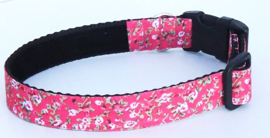A floral Ripstop fabric on a cerise pink background, lined with black velvet ribbon.